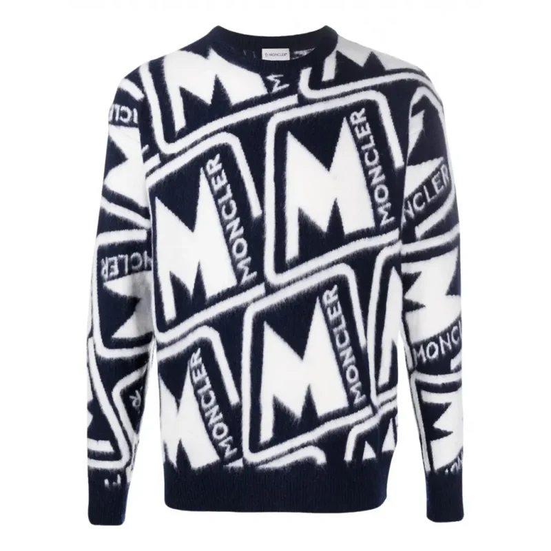 Moncler Navy Maglione girocollo in jacquard con logo size L