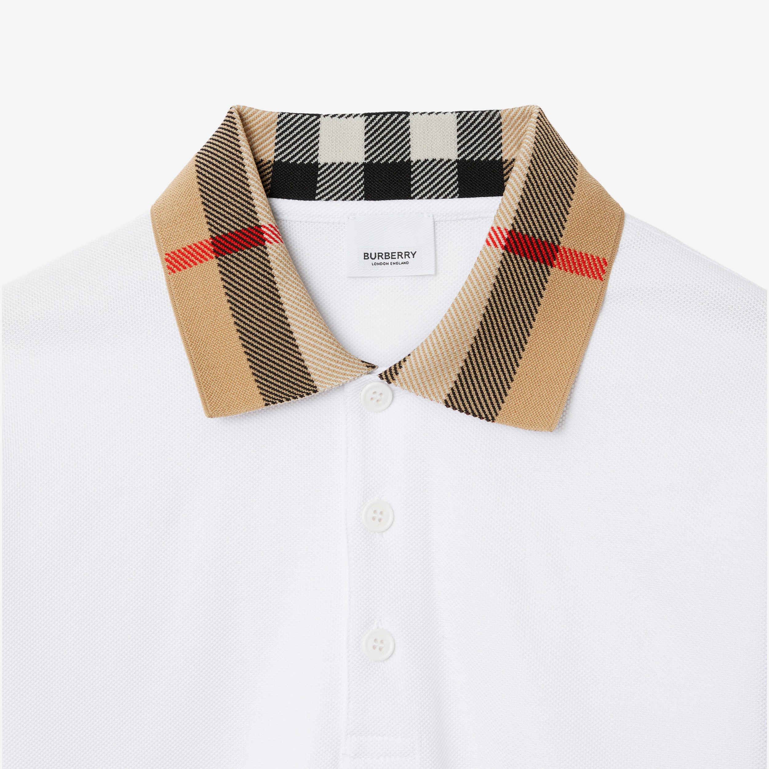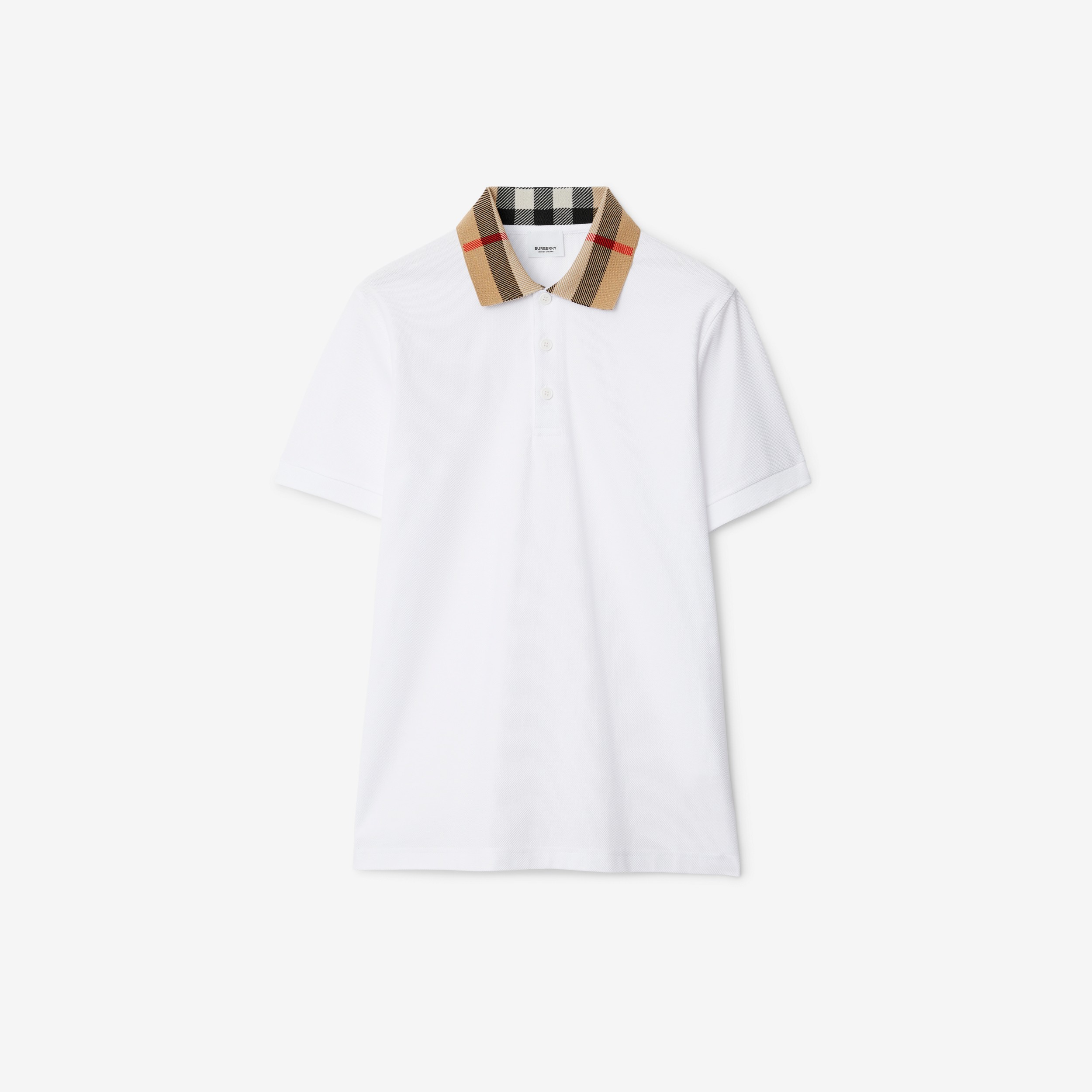 • Polo in cotone piqué, caratterizzata da una vestibilità slim e colletto in Burberry Check.