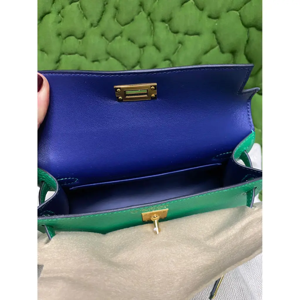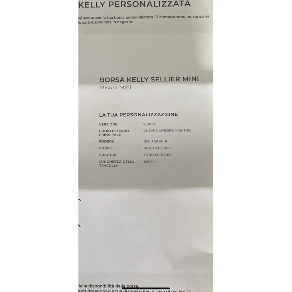 HERMES MINI Kelly2 0  sellier Chevre mysore colore mente esterno , interno bleu saphir Special order Due colori Verde con interno blu Nuova , full set Box , dust bag, fattura Hermès Condizioni: nuova e mai indossata neanche un minuto , fotografata e risposta nella sua scatola immediatamente