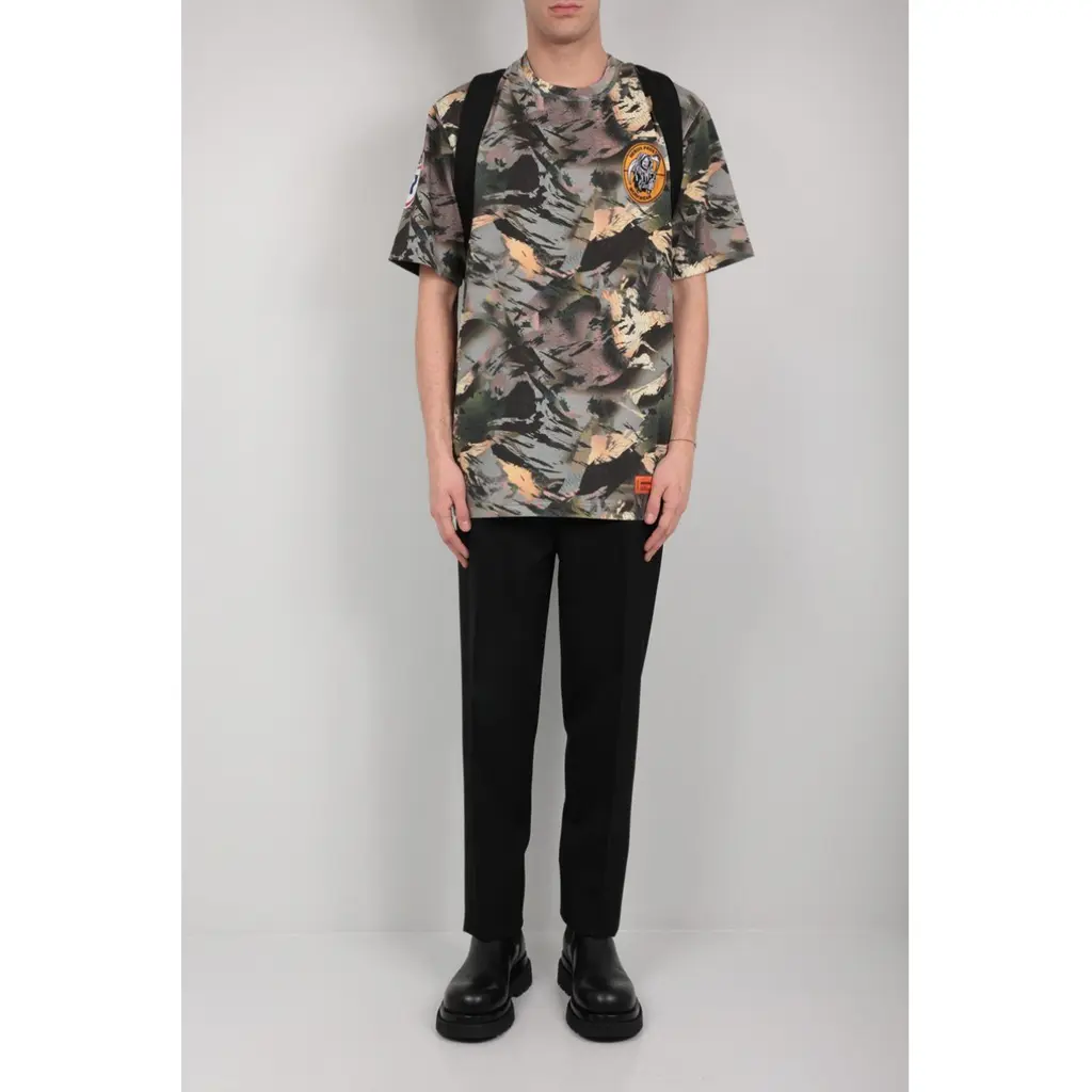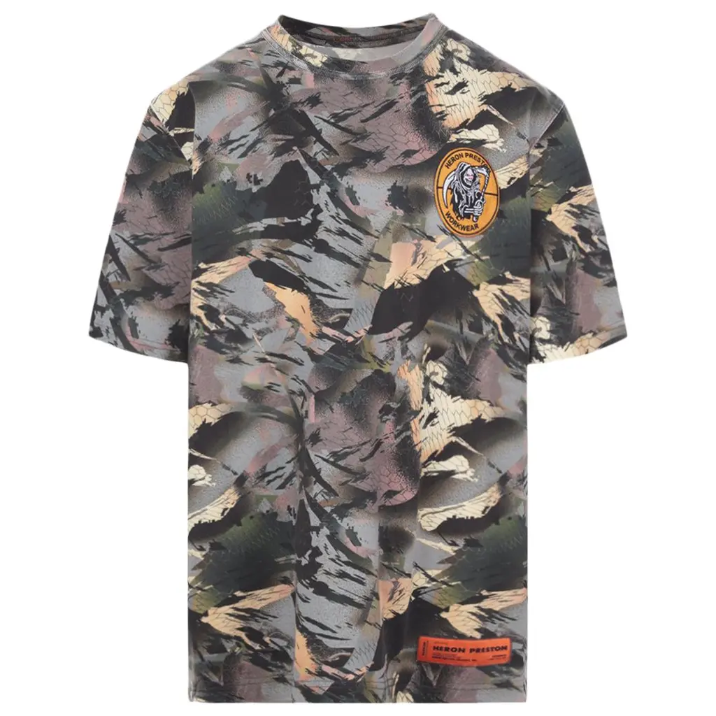 T-shirt regular-fit di Heron Preston realizzata in jersey di cotone a stampa camouflage con patch Workwear al petto. Caratterizzata da scollatura a giro, maniche corte con stampa Heron sul lato destro e fondo dritto. Completa il design l’inconfondibile patch logo al fondo. ulticolore 100% cotone organico made in Portugal